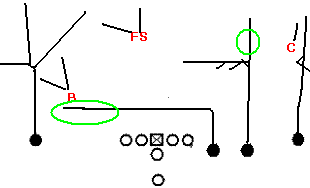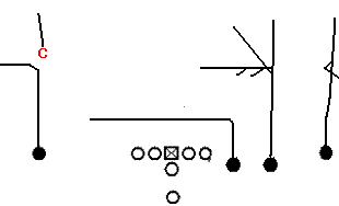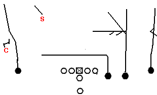 As a final note, the run and shoot is a four wide-receiver offense. That is how it was designed, and how it is run when one commits to it fully. If you don't use four wides -- for example, by substituting in a tight-end -- many of the purists would say you aren't a run and shoot team anymore. I will leave that debate for a later day. I just want to point out that it wouldn't be too difficult to imagine the Choice where the drag runner is actually a tight-end instead of a slot receiver. Indeed, many pro teams would agree with you.