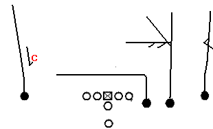 Second, and most importantly: this is the foundation for the entire offense. The triple-option is confusing and multifarious, but everyone knows you'll practice it all the time. That's how it is with this. You install this route on the first day and everyone must master it because it will show up -- in one form or another -- on almost every play. This will become obvious as I discuss the route in the context of the "Go" (below), as well as "streak" and "switch" and the "choice," and continue to show how it can be a backside combination for other routes like the smash pattern.